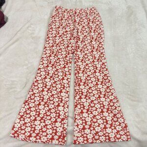 Floral Red & White Bootcut Pants By Forever 21 Size Medium elastic waist women