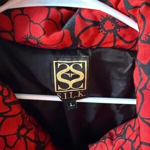 Stay stylish and warm with this vibrant floral red jacket. Perfect for adding a pop of color to your wardrobe.