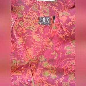 Stylish floral button-up blouse in red and green. Perfect for casual outings.