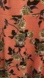 Colors: Peachy powder pink pastel coral dress with brown and beige roses and gray and black leaves