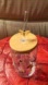 Clear glass jar with colorful floral design. Comes with a bamboo lid and a clear straw featuring a bee accent.