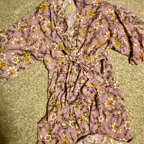 Short sleeve floral robe, purple. I bought to wear at the hospital after I had my baby. Never worn. Very soft.