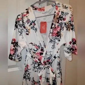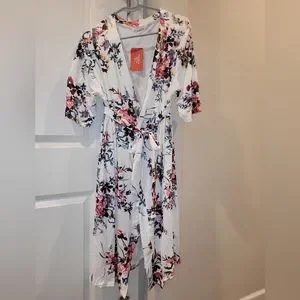Soft floral print robe with matching belt. Suitable for sleep or just lounging around the house.