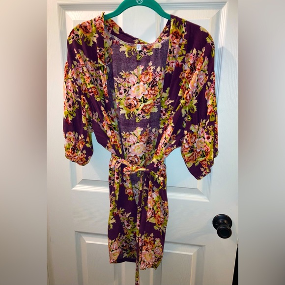 Beautiful chic floral robe. Worn once while getting ready for a wedding. Thin breathable material.