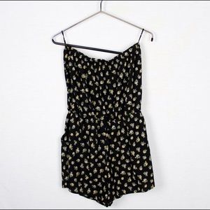 Forever 21 strapless romper. Flower details. Zip front, two pockets. Elastic at waist. True to size, never worn perfect condition. NO TRADES OR MODELING. REASONABLE OFFERS ACCEPTED THROUGH OFFER BUTTON.