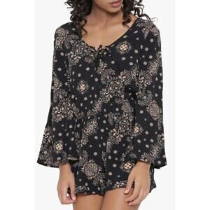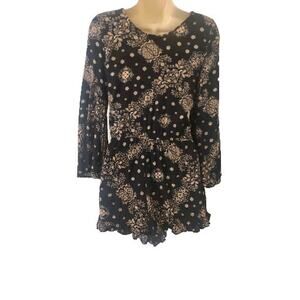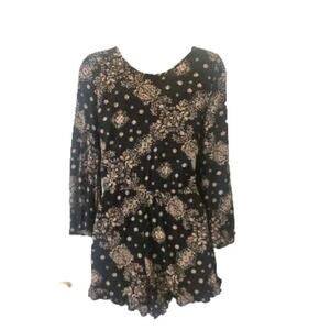 Floral Romper Forever 21 Long Sleeve Short M Black/Cream Trendy