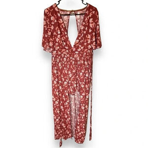 Floral Romper Maxi Dress Keyhole Low Back Lightweight - Dusty Rose Size Large