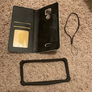 Includes Black Rubber Phone Protector, Strap, and Phone Cover.