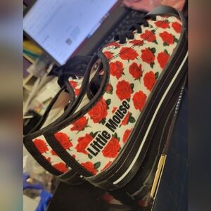 Floral Rose Canvas Sneakers with Black Accents Size 8 (38)