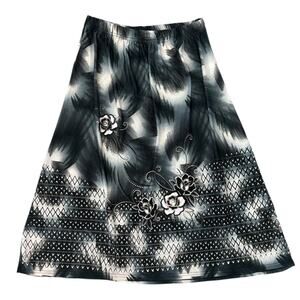 Floral Rose Print Shimmer Gray Black Stretchy Midi Skirt Women’s Size XL