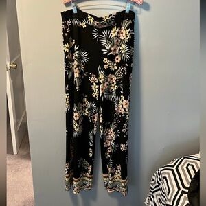 Chic wide leg pants with floral pattern. Comfortable and stylish. Dress up or down. Waist is 17” and stretches to 21”. Length is 42”, inseam is 29”. In like new condition and seem very well made.