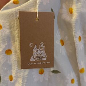 Charming apron dress with daisy floral print and ruffle straps. Perfect for a playful look.