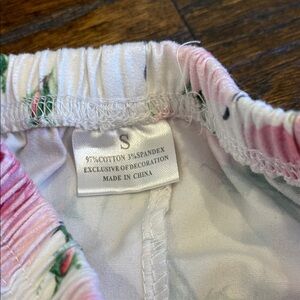 Adorable baby pants with pink floral design and black ruffle trim. Fits size 2-3T