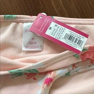 Chic bikini set with floral print and ruffle details. Features pink and green hues. Loved this set but ended up being too small.