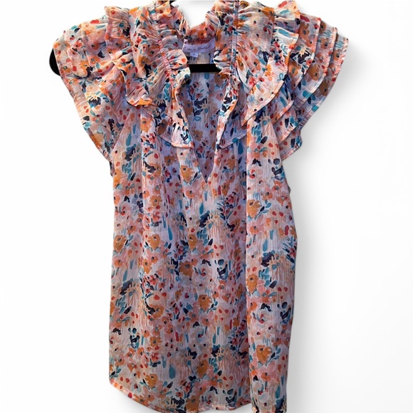 Chic floral blouse with ruffle details. Perfect for a stylish look.