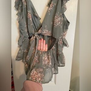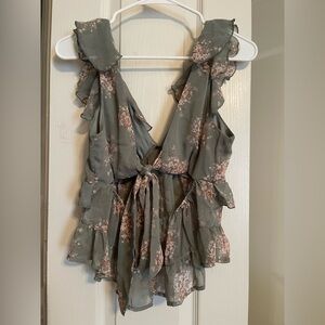 Ruffled blouse with floral print and open back detail. Worn once.