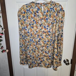 Embrace vibrant style with this floral ruffle blouse. Perfect for any occasion, this top features a lively multicolor design that adds a pop of color to your wardrobe.