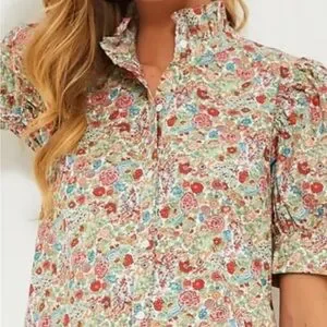 Elevate your wardrobe with this charming floral blouse. Featuring a delicate ruffle collar and a vibrant floral pattern, it's perfect for any occasion. The multicolor design adds a touch of elegance to your look.