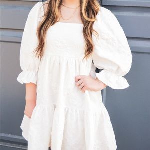 length sleeves, a tiered ruffle silhouette, and an all over