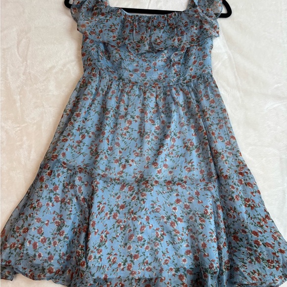 Charming floral dress with ruffle details. Perfect for casual outings. Lightweight and comfortable.