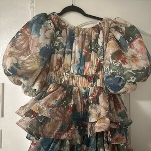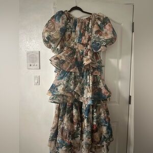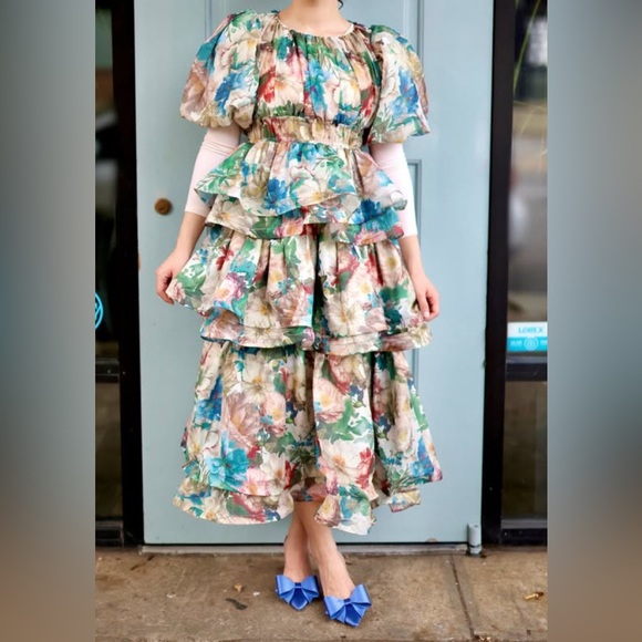 Embrace elegance with this floral ruffle skirt. Perfect for any occasion, it features a vibrant mix of colors that add a touch of sophistication to your wardrobe. Worn it only once for easter and didn’t like the fit on me. Runs a bit bigger. Is pretty long.