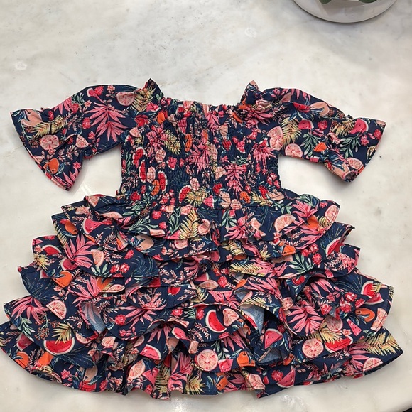 Charming floral ruffle dress with vibrant colors. Perfect for any occasion., only worn once’s by our toddler. Great condition