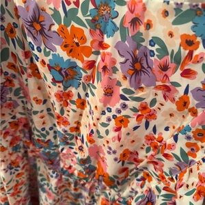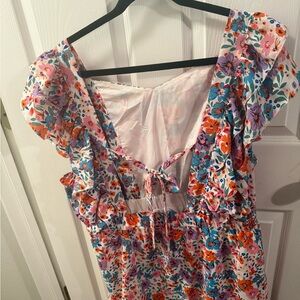 Vibrant floral dress with ruffle details. Perfect for any occasion.