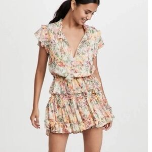 This is a MISA Los Angeles Lilian dress in a floral print crinkle chiffon.