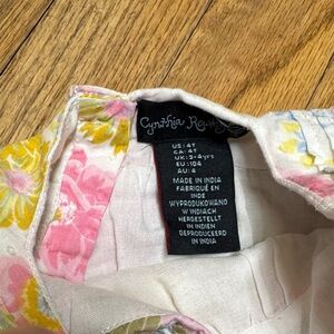Cynthia Rowley 4T Charming floral dress, butterfly sleeves with ruffle details. Features pink, yellow, and green flowers on a white background.