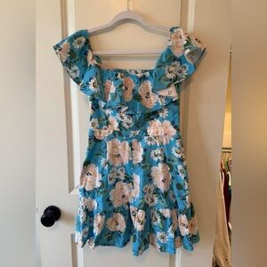 Blue floral dress with ruffle details. Perfect for summer.