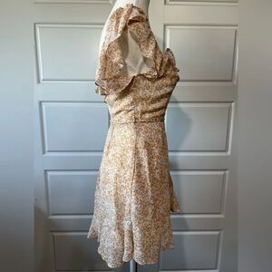 Embrace elegance with this floral ruffle dress. Perfect for any occasion, it features a flattering fit and delicate ruffle details. The soft cream color adds a touch of sophistication.
