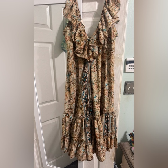 Charming floral dress with ruffle details. Features a mix of colors for a vibrant look.
