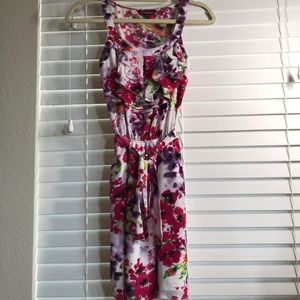 Beautiful Floral Dress featuring watercolor floral print, ruffles, and ties at the waist. Skirt is lined. Excellent condition. Perfect for date, wedding, graduation, or any special events. Pet-free, smoke-free Home. Great for any occasion! 🍭