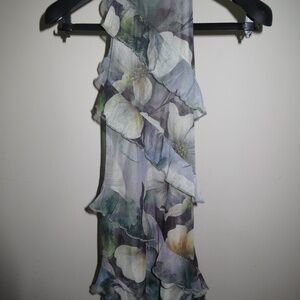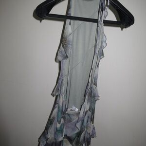 Fashion Nova floral ruffle mini dress. Featuring a high-neck halter design with cascading ruffles and a delicate watercolor floral print.