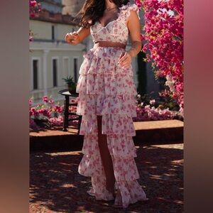 Elegant floral maxi dress with ruffle details & Top set. Size 00