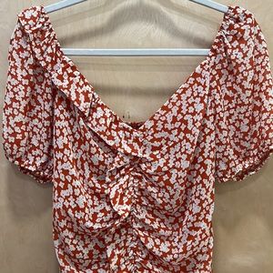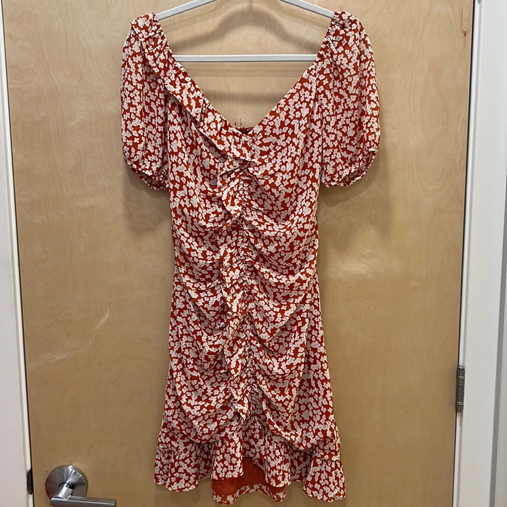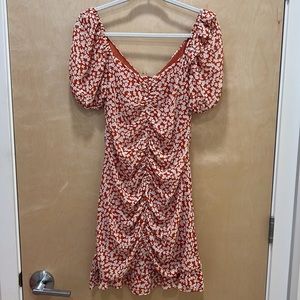 ASTR orange/white floral ruffle front mini dress. Super flattering on. Size M only worn once for an event