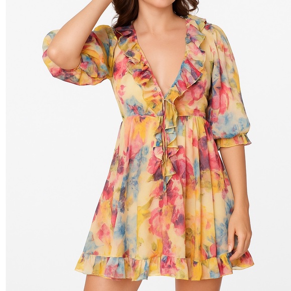 Embrace vibrant style with this floral ruffle mini dress. Perfect for any occasion, this dress features a colorful design that stands out.