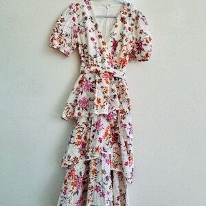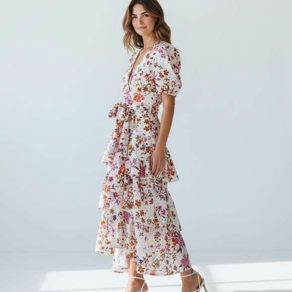 Embrace elegance with this floral ruffle mini dress. Perfect for any occasion, its vibrant colors add a touch of sophistication.