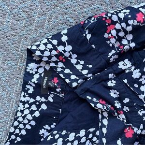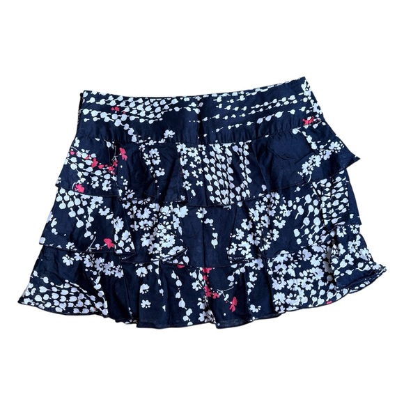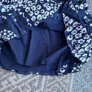 Express Size 2 tiered ruffles dark blue with red/pink and white floral pattern lined side zipper