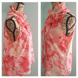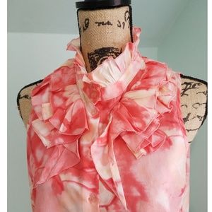 This gorgeous top is designed with an elegant ruffle style neckline that spreads through the chest area. Will look great with a pencil skirt and stilettos. NEVER WORN!!!