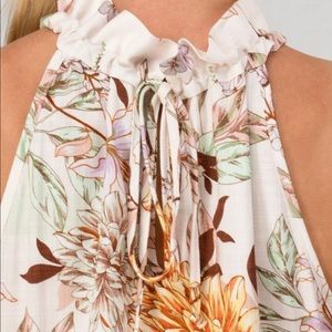 A delicate floral pattern over an ivory base. This beauty can be worn casual with your fav denim or dressed up under a blazer for work.