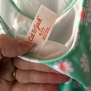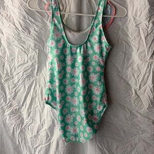 Never worn. Vibrant green swimsuit with charming floral design.