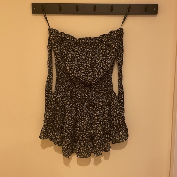 adorable romper with ruffles. Strings at arms are to tie around upper arm. Never worn. Forever 21.