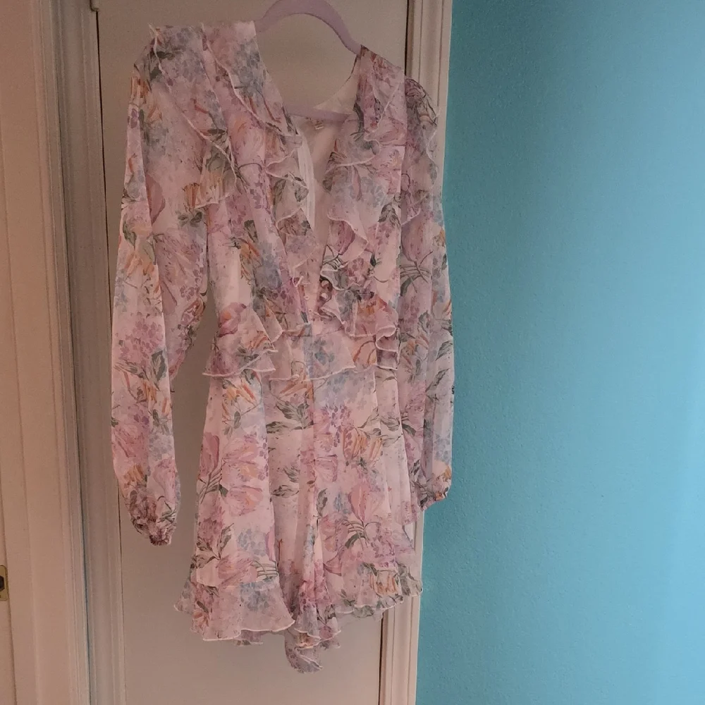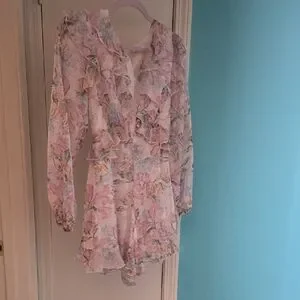 Charming floral romper with ruffled detailing. Perfect for adding a touch of elegance to any outfit.