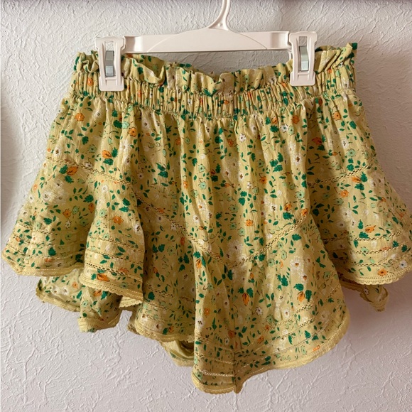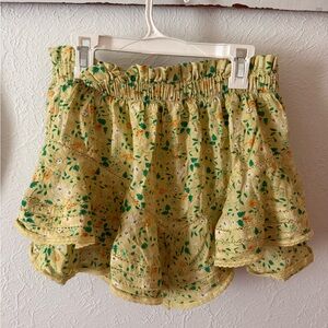 Bright yellow skirt with floral accents. Features playful ruffles and a comfortable fit. Worn once.
