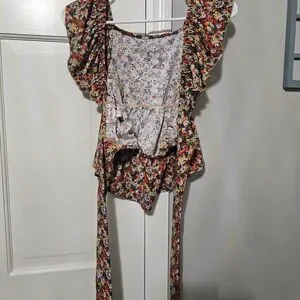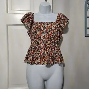 Chic floral blouse with elegant ruffle sleeves. Ideal for adding a pop of color to your wardrobe.