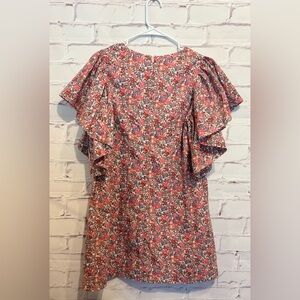 Embrace elegance with this floral mini dress featuring charming ruffle sleeves. Perfect for any occasion.