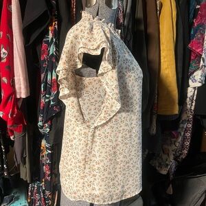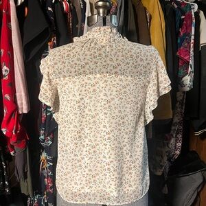 Embrace elegance with this floral ruffle sleeve top. Perfect for any occasion, this top features a delicate floral pattern that adds a touch of charm to your wardrobe.