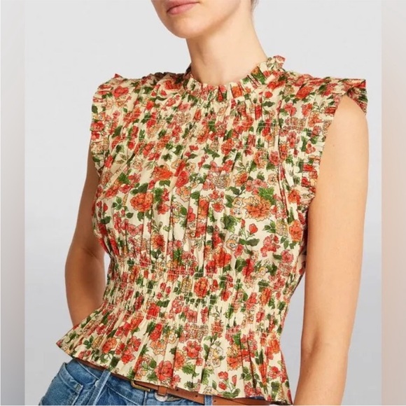Doen Nina Blouse. Lovely floral ruffle sleeve top. Delicate red and cream floral pattern. Perfect condition.