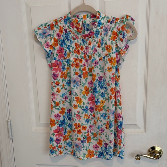 GUC floral ruffle sleeve work top. Size small. Sheer.